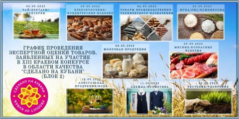 График проведения экспертной оценки товаров, заявленных на участие в Блоке 2 XIII Краевого конкурса в области качества «Сделано на Кубани»